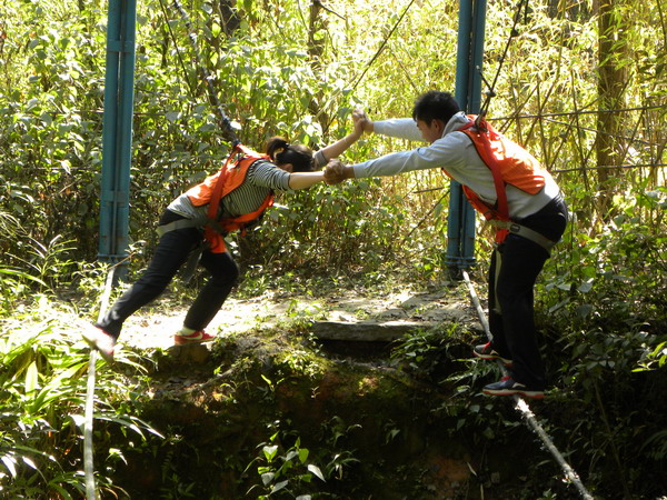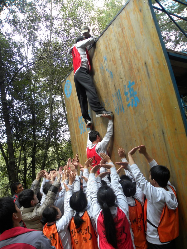 •  20121134日,昆明野鴨湖拓展訓(xùn)練基地那里留下了我們成長(zhǎng)的足跡。在各項(xiàng)訓(xùn)練活動(dòng)中,歌聲與微笑同在,汗水與淚水交織,演繹著敢于擋當(dāng)、不言放棄,奮力拼搏、突破自我,彼此信任、緊密團(tuán)結(jié)的真實(shí)故事,深深打動(dòng)了每一個(gè)人。最特別的還是徒手翻越4.5高的團(tuán)隊(duì)墻,因?yàn)槟抢锊粌H僅有大家?jiàn)^力向上攀爬劃下的印跡,更多的攀爬過(guò)程中緊密配合的汗水及動(dòng)人的淚水。大家真正體會(huì)到了“責(zé)任”的份量與團(tuán)結(jié)的力量。我們永遠(yuǎn)都是一個(gè)團(tuán)隊(duì)!